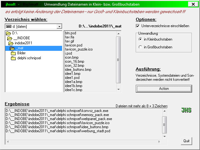 Programm zum Umwandeln von Dateinamen in Klein- oder Großbuchstaben (wahlweise inklusive Unterverzeichnisse).